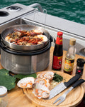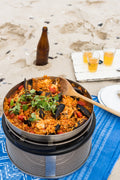 Der Wok von COBB ist eine tiefe, runde Form aus feinstem Edelstahl mit einem eingekapselten Aluminiumboden, der eine gleichmäßige Wärmeverteilung gewährleistet. Die Griffe sind hitzebeständig und so konzipiert, dass der Wok direkt auf den Rand der Innenschale gestellt werden kann. Er kann in den meisten Spülmaschinen gereinigt werden. Der Wok wiegt ca. 1kg und hat einen Durchmesser von 30cm und eine Tiefe von ca. 6cm. Er fasst bis zu 3,5 Liter.